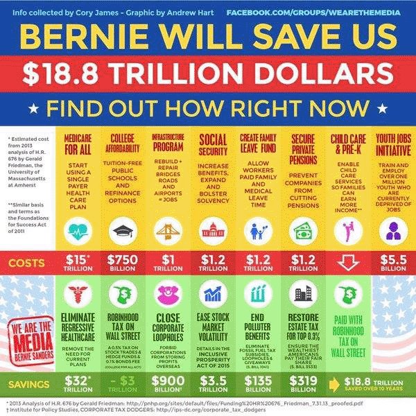 There has been lots of lip bumping about Bernie’s policies being too expensive and expansive….well then let us look at what his policies will do for the country…..